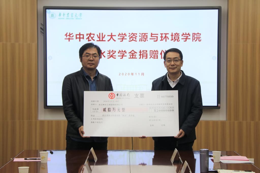 11月19日下午,“林水奖学金”捐赠仪式在主楼315会议室举行。武汉林水工程咨询有限公司总经理郭晓亮及企业相关负责人,91直播 教育发展基金会正处级督导员唐仁华,91直播 党委书记吕守华、副书记熊海林等出席仪式。