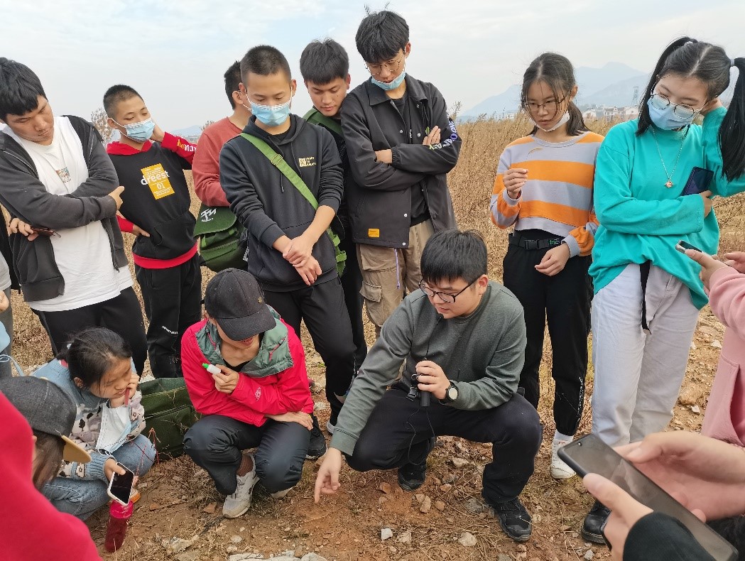此次实习涵盖黄石国家矿山公园、大冶铜绿山尾矿库、阳新县仙岛湖、通山九宫山和隐水洞地质公园等多处教学实习点。老师现场授课和学生野外实践相结合,寓教于乐,教学相长。实习过程中,同学们掌握了罗盘、地质锤、标准土色卡等实习工具的使用方法,了解到地球四大圈层的相互作用,也加深了对“人地和谐”的理解。钟淘淘同学谈到:“古人云:‘纸上得来终觉浅,绝知此事要躬行。’此次实习让我深深体会到实践的重要性,平时既要学好课本知识,也要融于实践生活。十分感谢为此次实习保驾护航的每位老师。”