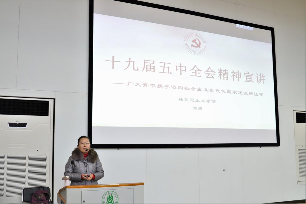为深入学习贯彻党的十九届五中全会精神,12月10日,91直播 邀请马克思主义91直播 胡娟老师在第三教学楼咸宁报告厅为师生党员做专题辅导报告。