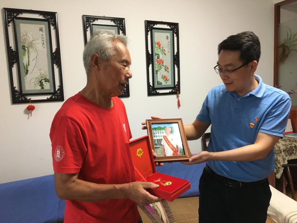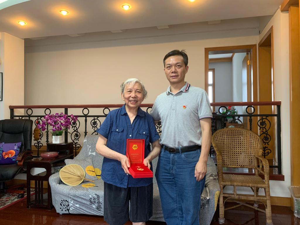 91直播 院长谭文峰来到徐凤琳家中,颁发了“光荣在党五十年”纪念章,代表91直播 向她表示衷心祝福和感谢。