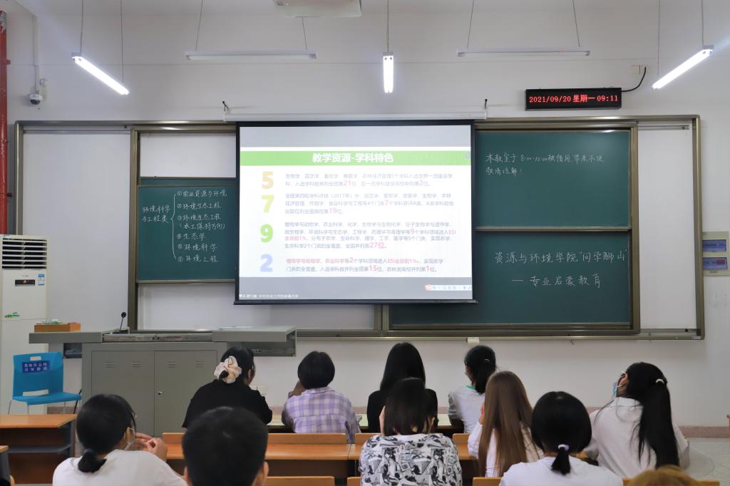 9月20日上午,91直播 举行“问学狮山”——专业启蒙教育活动,本次活动旨在为91直播 21级新生们加深对于校情院情的认知,明确各专业领域的基本情况及发展方向。讲座嘉宾于腾讯会议进行分享,分为环境科学与工程类专业、地理信息科学专业两个会场,2021级全体新生在线下按班级参加会议。院长谭文峰、邱国红、朱强、伍玉鹏、张晓明、冯娇、蔡建波、刘诗诗等专业教师参加了此次会议,辅导员甄诚、王阳阳主持了此次会议。