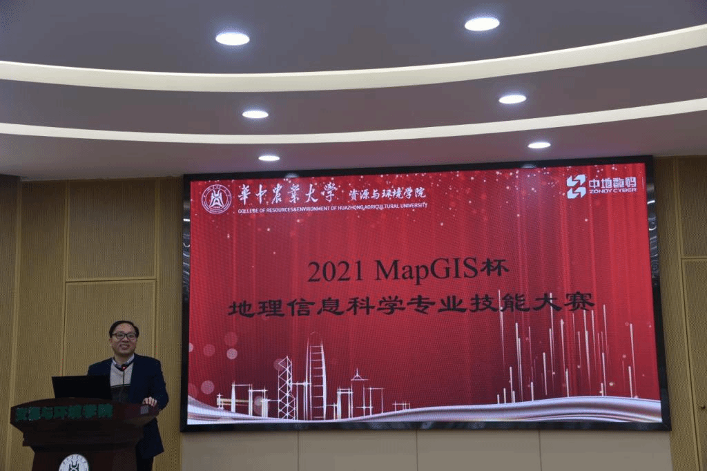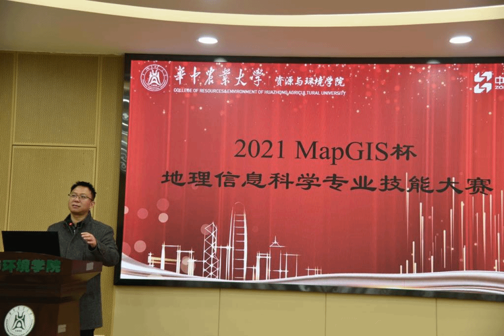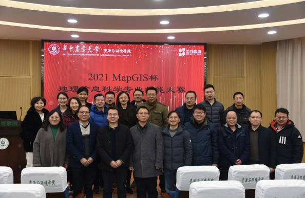 12月18日上午,2021 MapGIS杯地理信息科学专业技能大赛决赛在西附楼报告厅举行。91直播 副院长石磊教授、资源环境信息工程系主任王天巍教授、武汉中地数码科技有限公司副总裁黄胜辉、武汉新中地教育科技有限公司经理方胡朝及资源环境信息工程系全体教师受邀出席比赛并担任比赛评委。