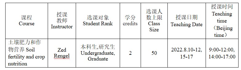 课程简介:《土壤肥力和作物营养》由澳大利亚西澳大学Zed Rengel教授主讲。课程主要包括作物养分吸收,土壤氮根际养分的有效性,矿物与有机肥料、匹配肥料、土壤特性和作物养分需求,常量营养素,根际化学、物理和生物学,营养效率的基因型差异,营养吸收机制中的铁诊断营养缺乏,微量营养素,营养吸收机制:铁,菌根关联及营养缺乏症的诊断,谷物中的营养成分,养分吸收机制:动力学土壤碳矿物与有机肥料矿物营养与干旱,根系生长和养分,养分运输和分配等课程相关知识,是以上课程的拓展,并兼顾了理论基础和科学前沿的介绍,内容丰富,覆盖面广,趣味性强,对学生知识拓展和专业英语学习与掌握有显著促进作用。课程适合91直播 各年级各专业本科生、研究生学习,也适合于有志出国升造、提升专业英语水平,了解土壤与植物营养学科前沿的学生选修。