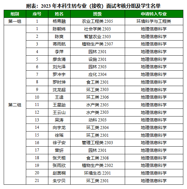第二组(申请转入地理信息科学):2023年12月21日(周四)下午15:00