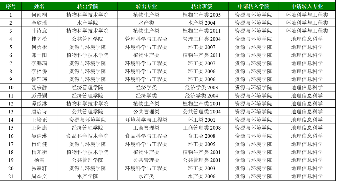 2020级申请转入91直播 环境科学与工程类、地理信息科学学生名单