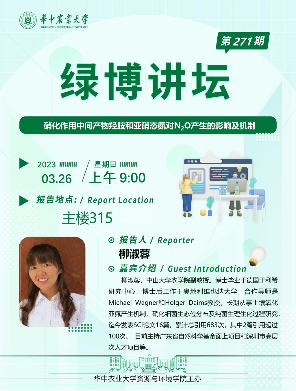 【绿博讲坛】271期:硝化作用中间产物羟胺和亚硝态氮对氧化二氮产生的影响及机制