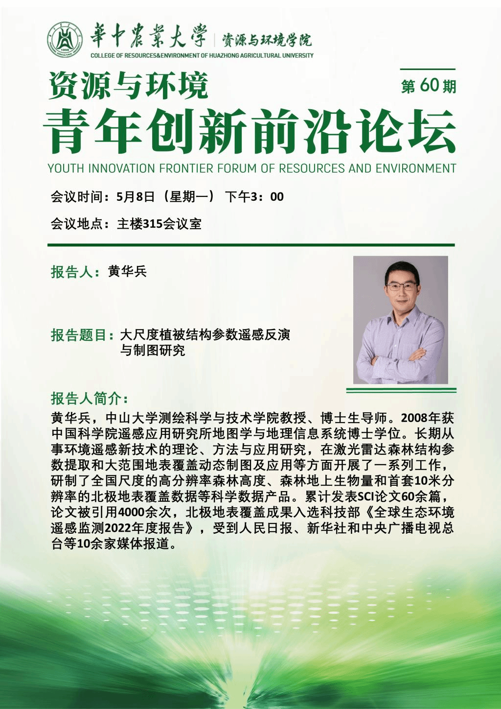 【前沿论坛】60期:大尺度植被结构参数遥感反演与制图研究