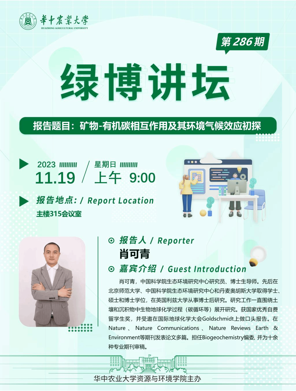 【绿博讲坛】286期:矿物-有机碳相互作用及其环境气候效应初探