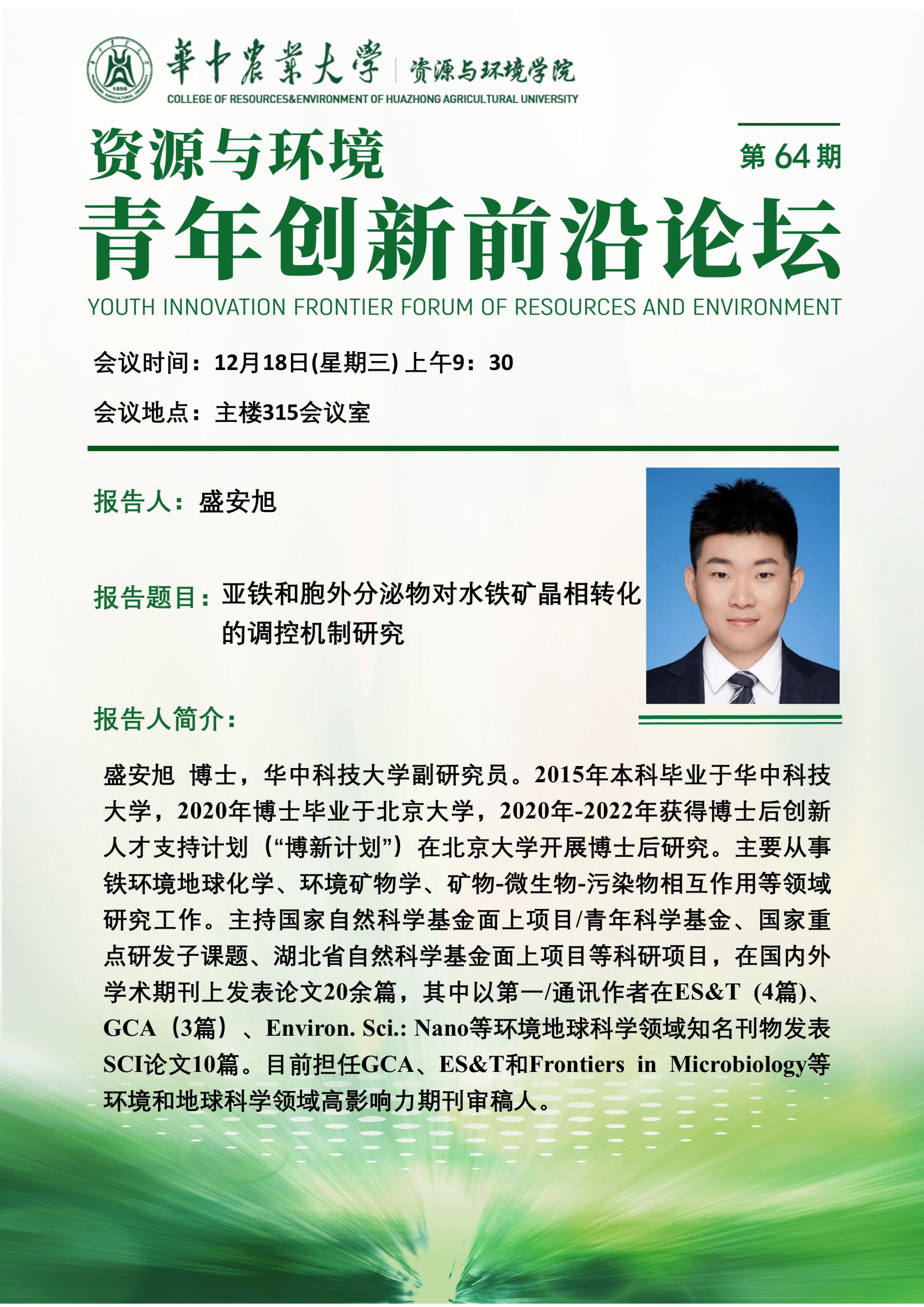 【青年创新前沿论坛】亚铁和胞外分泌物对水铁矿晶相转化的调控机制研究