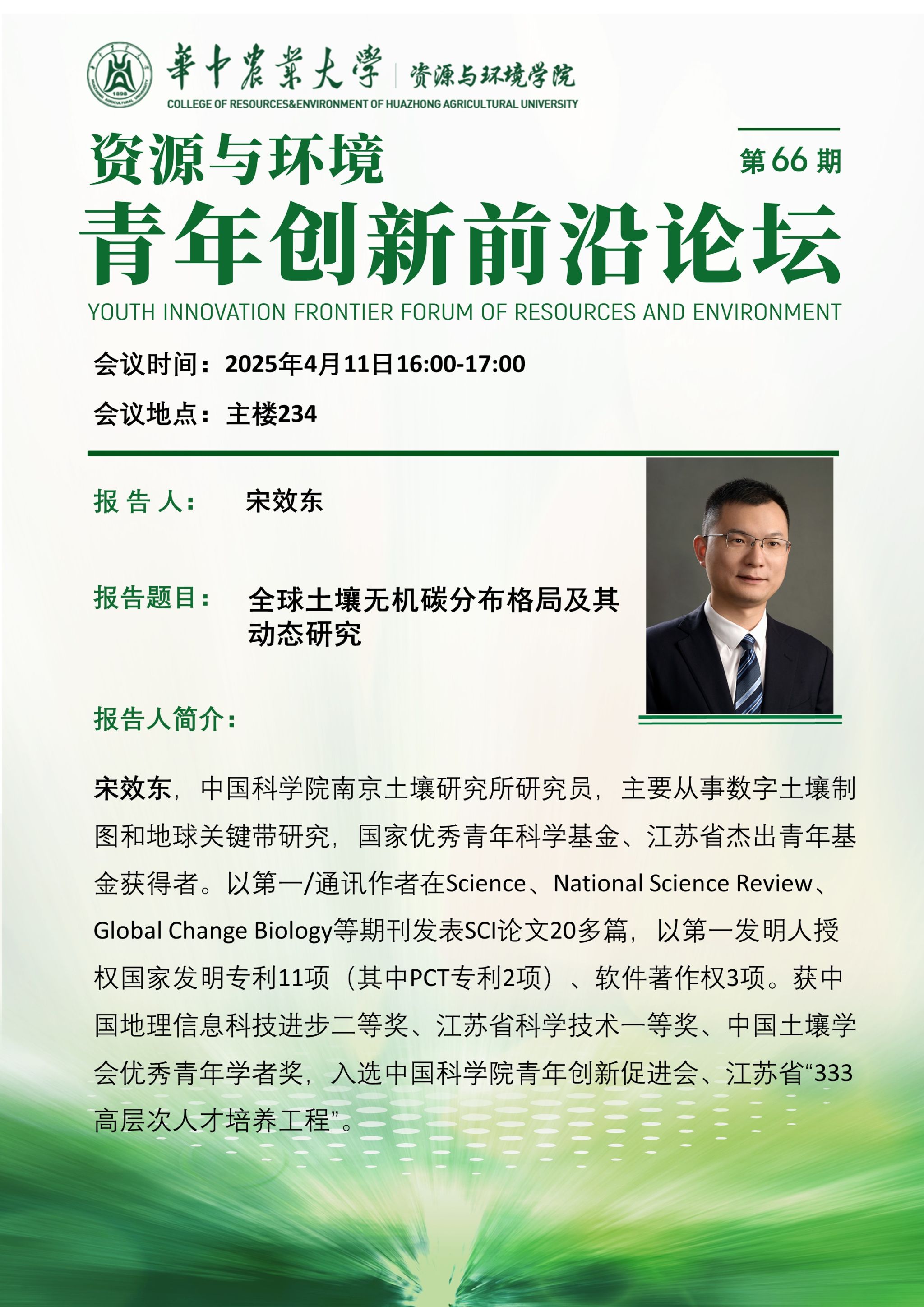 【青年创新前沿论坛】第66期:全球土壤无机碳分布格局及其动态研究