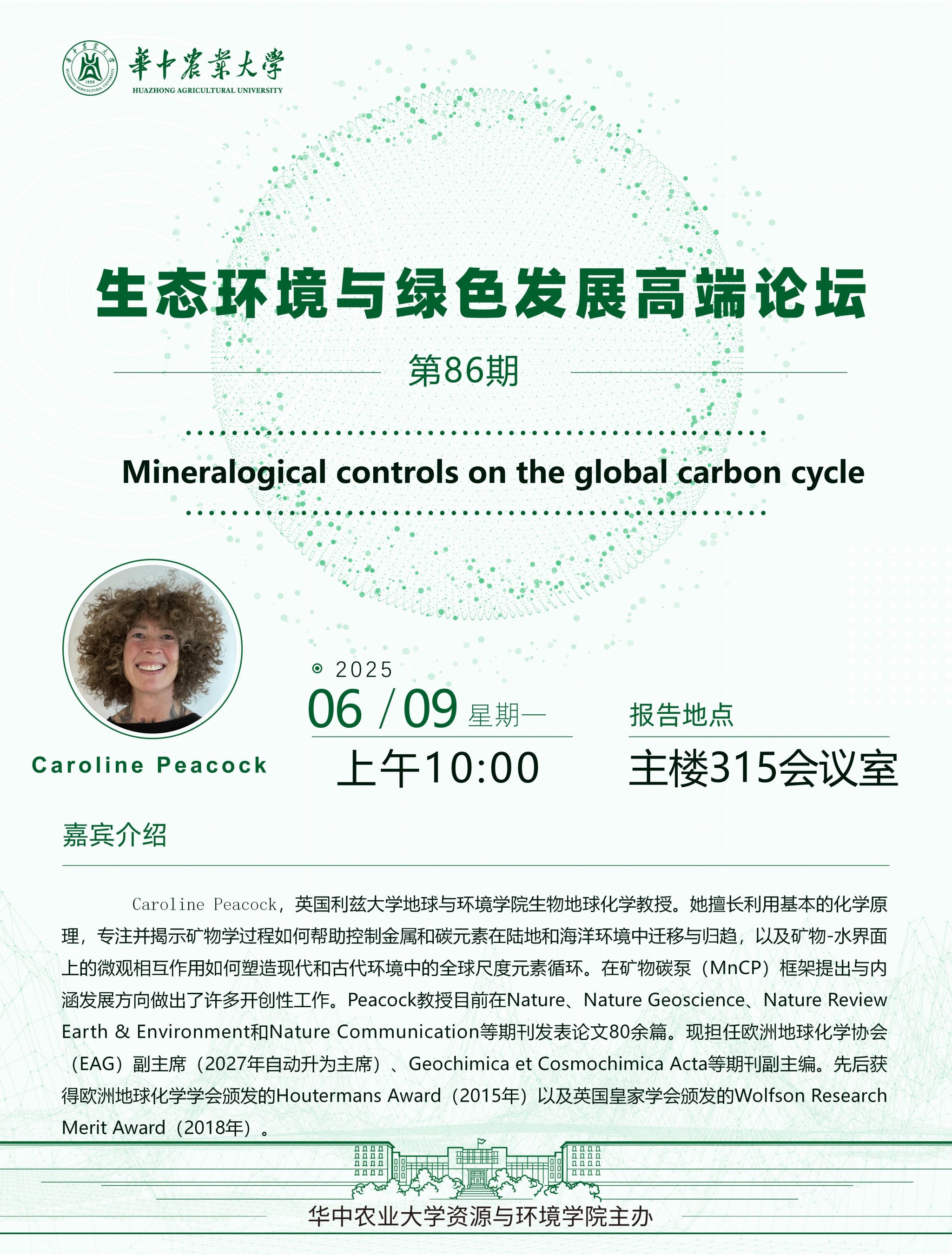 【高端论坛】第86期:Mineralogical controls on the global carbon cycle