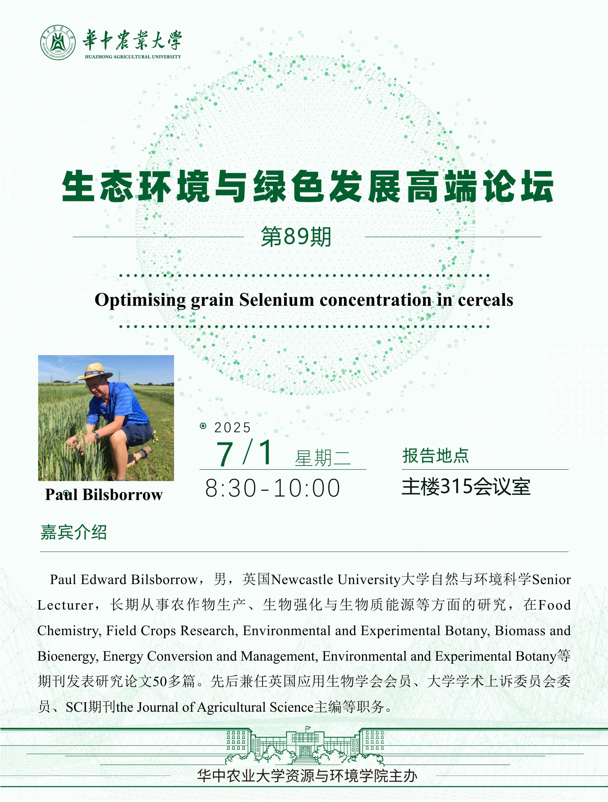 【高端论坛】第89期:Optimising grain Selenium concentration in cereals