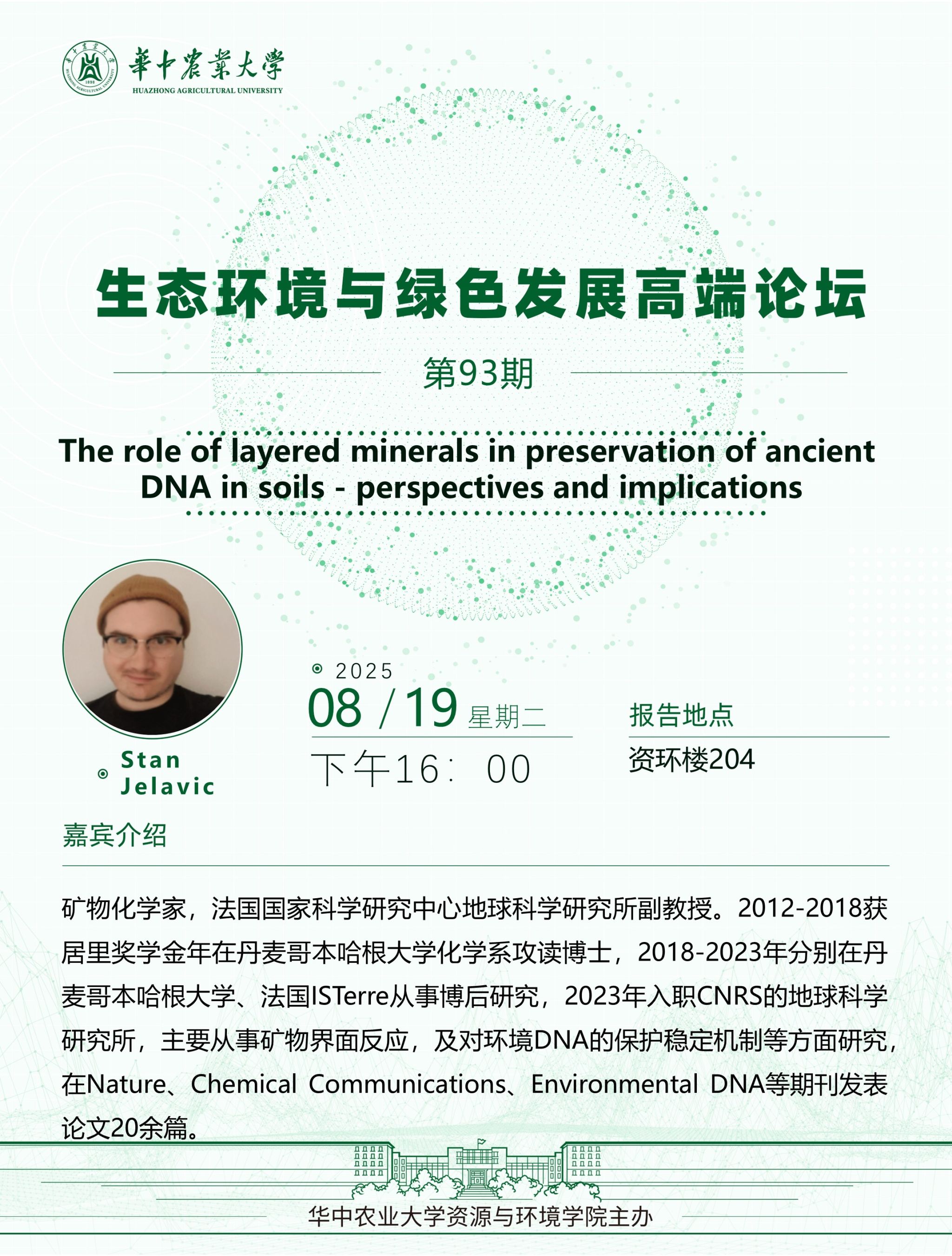 【高端论坛】第93期:The role of layered minerals in preservation of ancient DNA in soils - perspectives and implications