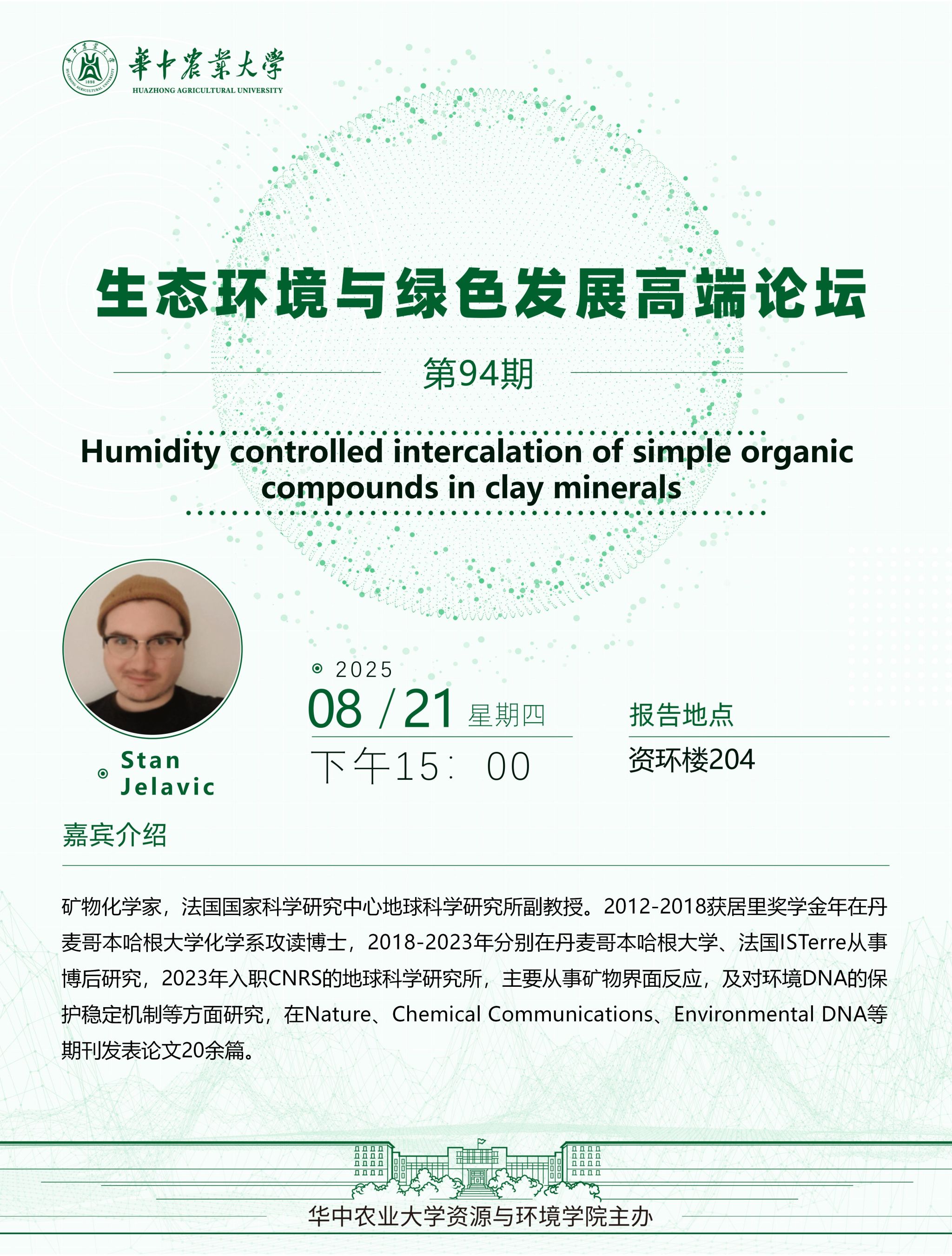 【高端论坛】第94期:Humidity controlled intercalation of simple organic compounds in clay minerals