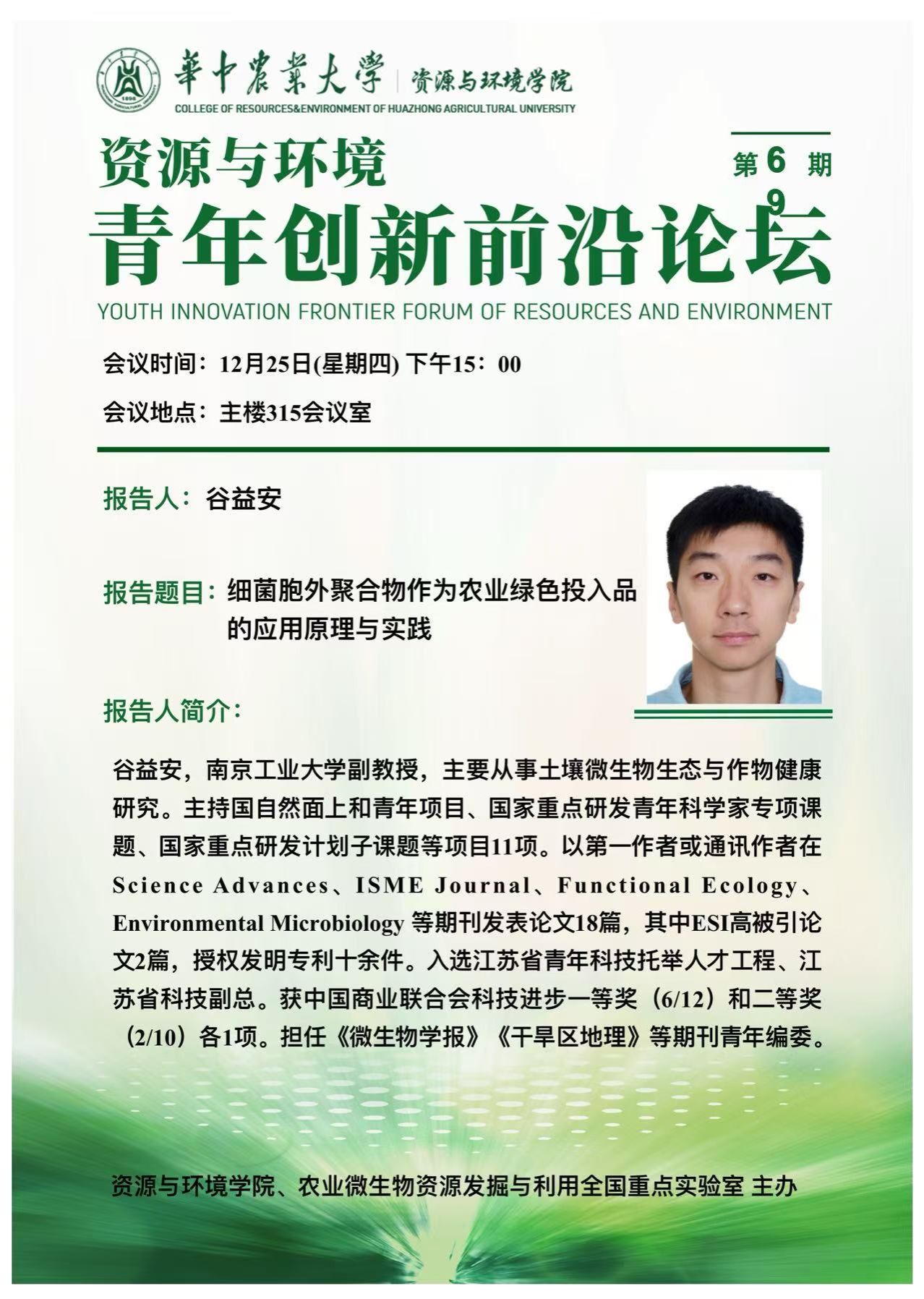 【青年创新前沿论坛】第69期:细菌胞外聚合物作为农业绿色投入品的应用原理与实践