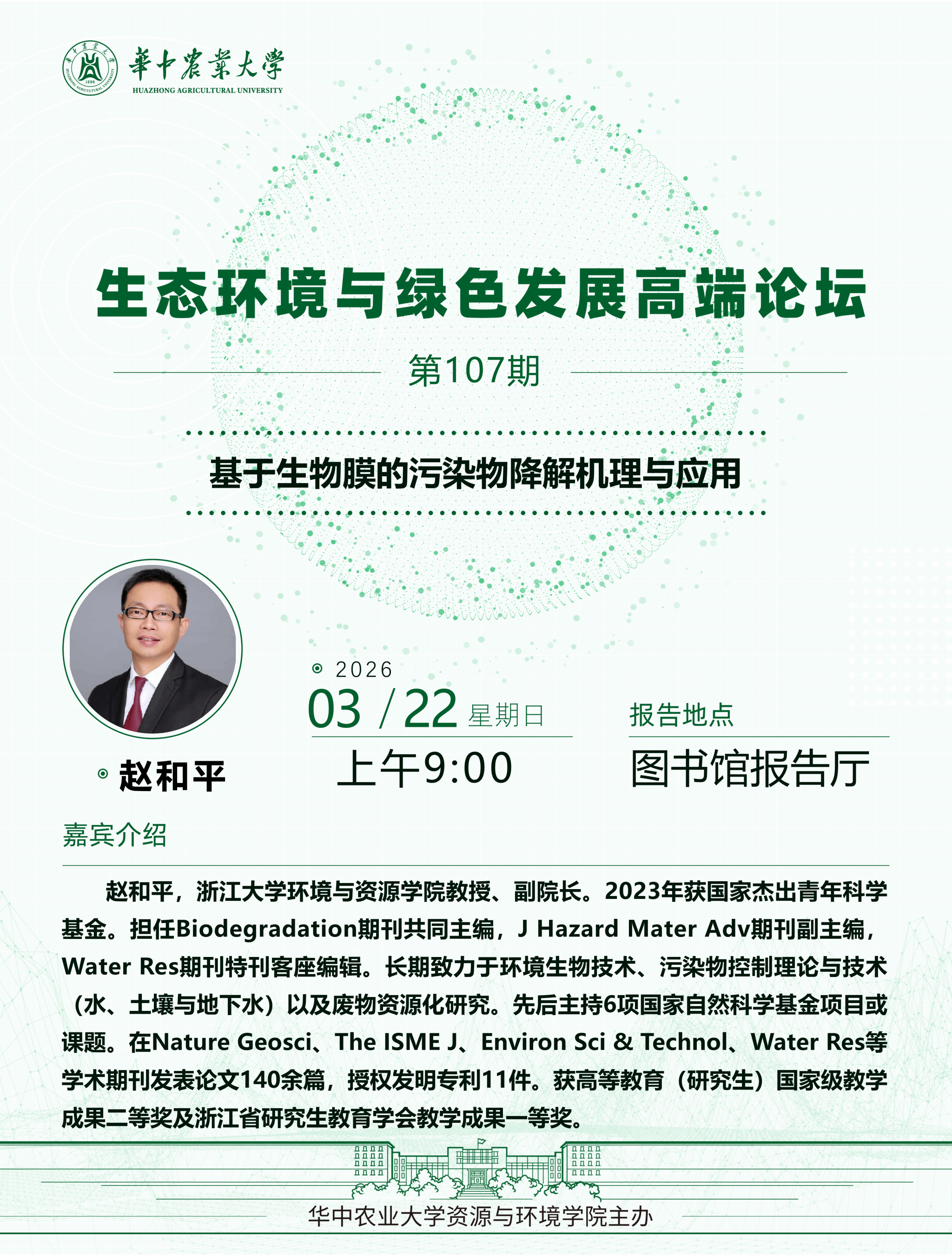 【高端论坛】第107期:基于生物膜的污染物降解机理与应用