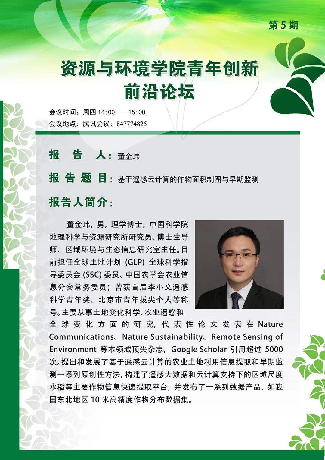 【青年前沿创新论坛】基于遥感云计算的作物面积制图与早期监测
