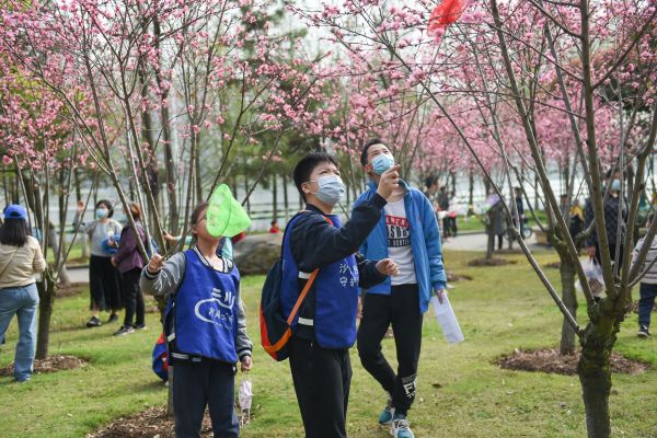 刘如达带同学们观察菜粉蝶。 摄影记者许巍魏摄