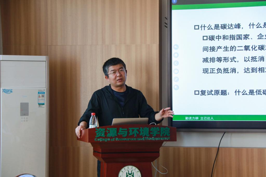 种植业、养殖业产生的碳排放以及不同区域环境对碳排放都是有影响的。宋明伟介绍了农业领域碳排放量的三个阶段和碳排放量特征,并引导同学们正确区分碳源与碳汇,知道碳固定的方法,以及种植业碳排放驱动因素。最后,宋老师提出思考题“农田生态系统固碳减排途径有哪些?”并和同学们共同讨论思考解决。同学们踊跃发言,并根据分享内容提出了很多问题,宋明伟也一一进行了解答。
