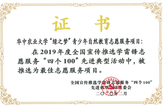 “绿之梦”获评全国宣传推选学雷锋志愿服务最佳志愿服务项目