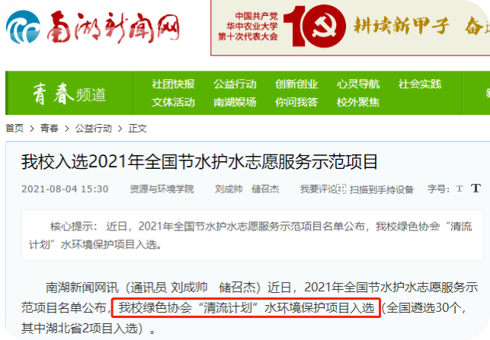 项目入选全国节水护水志愿服务示范项目
