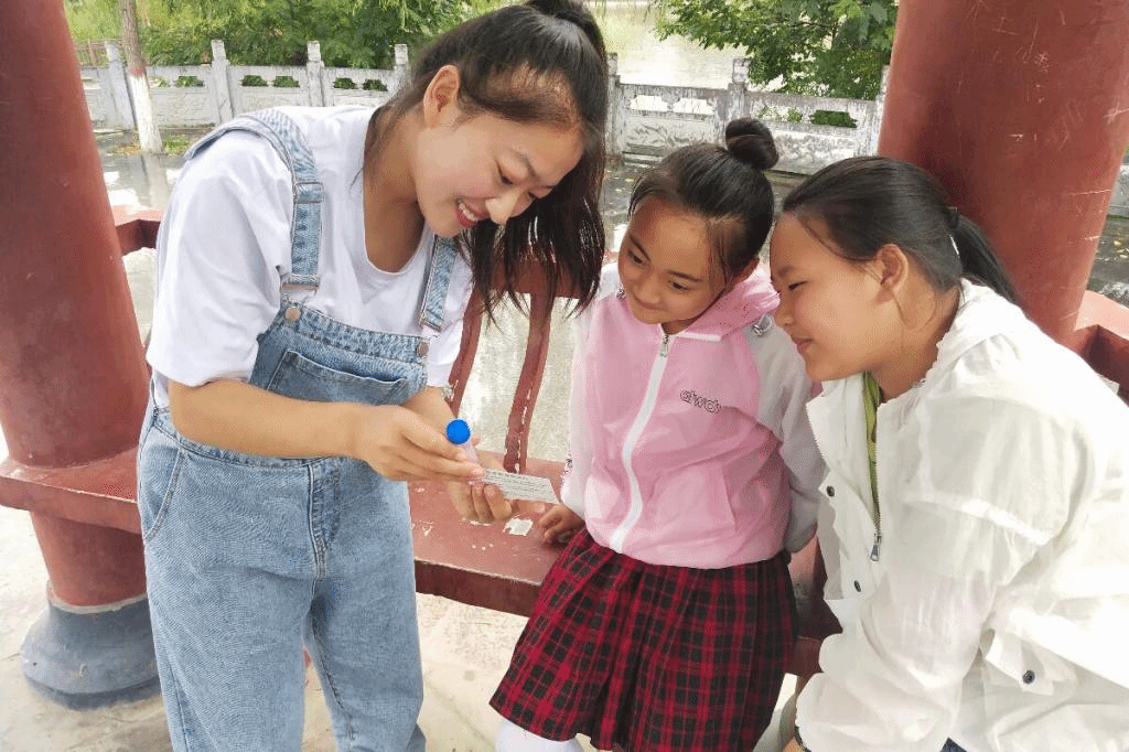 实践队员进行水质检测科普