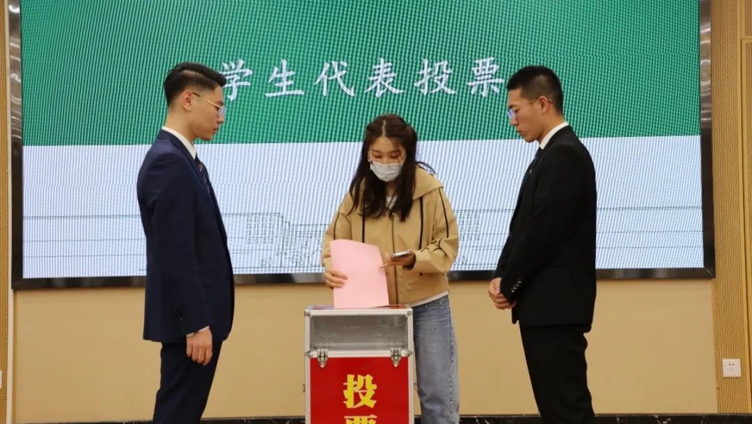 在铿锵有力的国歌声中,会议正式拉开帷幕,会议筹备委员会代表宣读《91直播 第十四次学生代表大会选举办法》、《91直播 第十四次学生代表大会选举总监票人,监票人,计票人建议名单》、《91直播 出席91直播 学生代表大会代表候选人建议名单》。并以无记名投票方式选举产生了钟涛、刘慧文、李艳峰、王天艺等十七名学生代表。