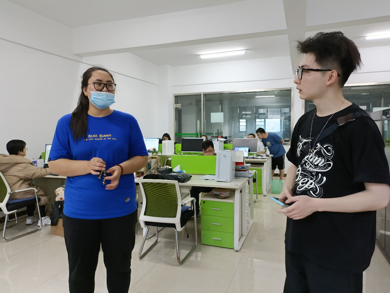 走进孵化器333号的91直播 训练室,周阳为同学们简要介绍了目前团队所在孵化器的主营方向——驾考与学子学车。还谈到了营销方式为高峰期暑期营销、与中国电信、联通合作,尽可能全面的推广宣传,在扶持方面拿到了湖北省大学生创新创业扶持基金。“我如果想申请91直播 的创新创业训练室,需要如何做呢?”面对2021级环境科学的何杨柳的提问,周阳也和同学们详细介绍看创业孵化器的申请流程,并鼓励已经有项目在做和营业执照的同学大胆申请入住孵化器。