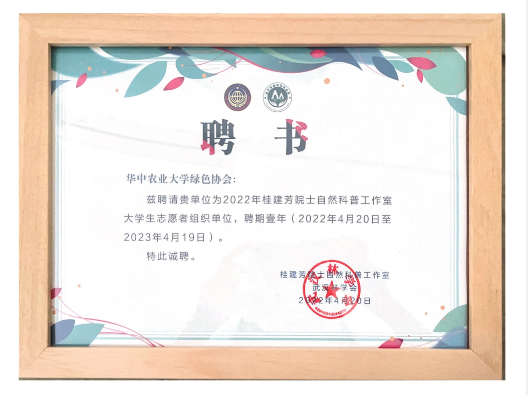6月21日,由武汉市科学技术协会、武汉市园林和林业局联合主办的桂建芳院士自然科普工作室院士公开课活动在解放公园举办。中国科91直播 院士桂建芳、陈孝平,以及7位新受聘的专家代表,围绕“从生态健康到个人健康,人与自然这样和谐共生”这一主题,和高校大学生面对面交流。91直播 博物馆馆长姜昊作为新受聘专家参与交流,91直播 绿色协会被聘任为“桂建芳院士自然科普工作室大学生志愿者组织单位”。