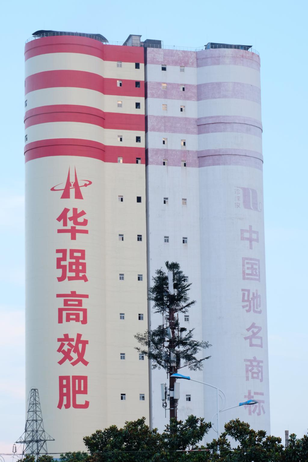 领学结束后,在陈部长的带领下,实习队伍集合前往复合肥的装配车间和肥料生产的主控间。前行路上,华强集团的双高塔映入眼帘。