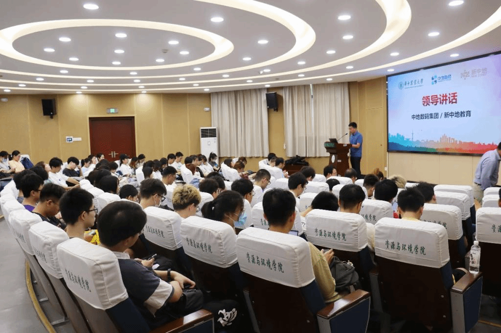 随后,中地数码集团新中地教育技术总监徐国华详细介绍了中地数码集团的发展历程,并总结出校企联合GIS软件开发实训班的三大意义:一是能够学习了解软件企业开发技术,获得一个进入GIS开发领域的机会;二是能获得一个观察、实践和思考的企业场景的机会;三是可以观察了解现代软件企业组织架构和人才需求,前置职业规划。