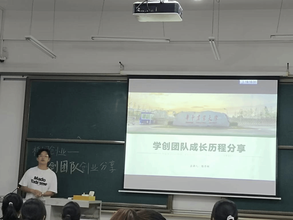 (图2 陈子柯为同学们讲述创业团队成长历程)