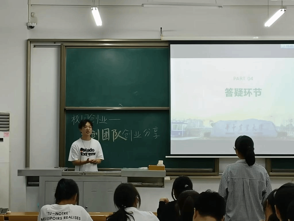 随后陈子柯分享了其学创团队的创业经验,并讲述了如何开展创业工作、创业资金从何处来的问题,接着介绍了学创团队的部分代表创业项目,学创团队创立了华农唯一一家校内驾校,每年为学生提供优质服务,为学生顺利拿证保驾护航。
