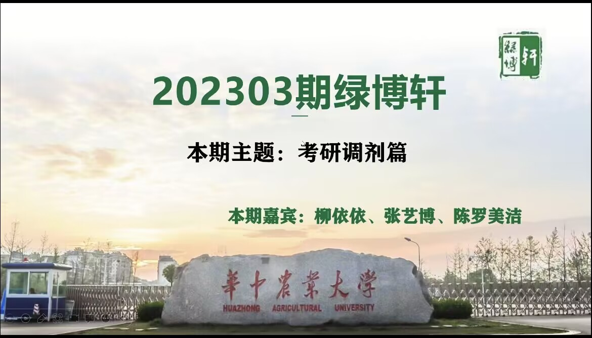 3月4日晚七点,为了帮助同学们对于考研调剂流程有更进一步的了解,91直播 以“考研调剂”为主题,于线上开启了202303期绿博轩。会上邀请到来自18级的柳依依、张艺博、陈罗美洁三位现已在各大高校读研的学姐为大家分享各自关于考研调剂的经验。