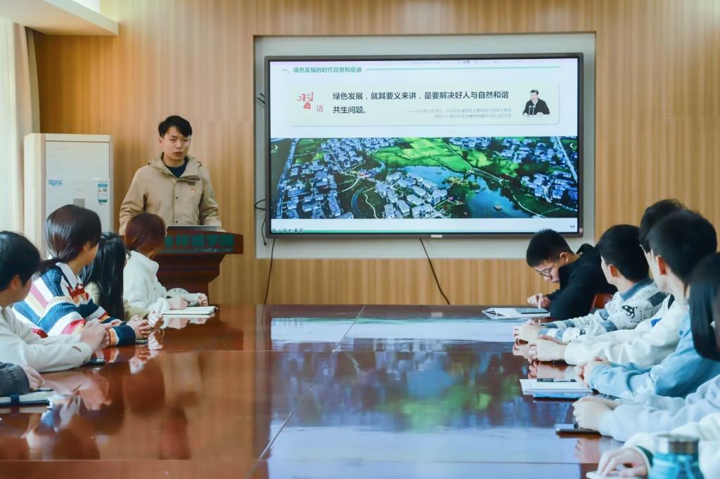 “绿色发展的时代意涵,在大学生的成长之路上如何体现?”学校党的二十大精神“精读精讲”宣讲团成员甄诚谈到,习近平总书记在党的二十大报告中指出,持续深入打好蓝天、碧水、净土保卫战,在这场战斗中,我们要深刻认识保护生态环境、实现绿色发展的重大意义,勇做“排头兵”、“主力军”。他介绍了91直播 在湿地保护、水污染治理、土壤有害物治理等方面取得的成果,随后,分享了学校2013届硕士毕业生张慧敏的故事,曾获“全国五一劳动奖章”的她矢志不负“环保人”的光荣使命,于2013年进入江西省生态环境监测中心工作,在当地发生水污染事件时,用专业知识实现污染最小化,长期奋战在环境监测的第一线。环工类2203班团支书江庆在学习后感慨道:“在青年榜样的引领下,我们更应树立远大理想,锤炼本领,接过为生态环境保护的接力棒!”