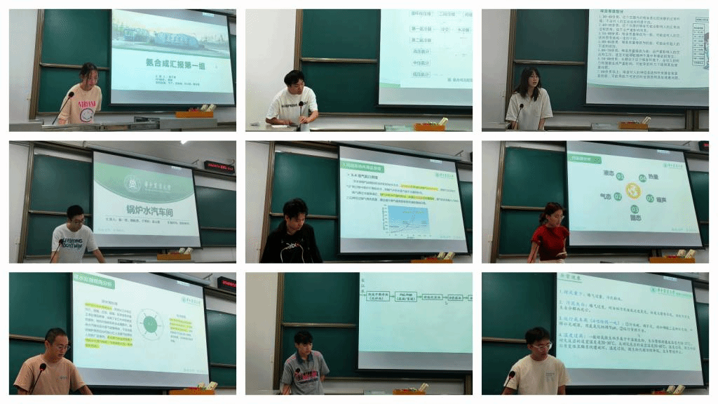 在公司相关负责人的热情接待下,同学们首先了解企业整体情况,接受公司一级安全教育,集中学习实习车间生产工艺流程,然后分别前往总控室、气化锅炉车间、水处理厂和氨合成厂实习。总控室内,同学们近距离观摩了高度集成、精密运作的中控系统,体会到科技改变生产力的力量。生产现场,看着如蛛网般排布的粗粗细细管道、错落有序排列的生产设备与设施,同学们不禁提出了问题:为什么管道有不同颜色?为什么设备有圆有方?它们是什么构造和原理?有什么作用?面对提问,现场工程师们带领着同学们沿管道顺序介绍了工艺物质的走向与变化,设备的结构、原理与主要参数,为同学们一一解惑。当走进污水处理厂和净水厂时,同学们看到自己熟悉的设施,变得自信从容起来,和工程师之间展开了热烈地互动。有对已知的深度理解,也有对新知识的好奇,许多生产“难题”和“秘决”被分享出来。例如,如何通过改进设计节约处理成本、如何调整生化池参数以适应新的污水处理需求等,这些交流使同学们切实体会到扎实的专业基础在实际应用中的重要性,以及技术攻关的艰辛与不易。炎炎烈日下,工程师额头如注的汗水,同学们专注的眼神,传递着敬业精神和对知识的渴望。