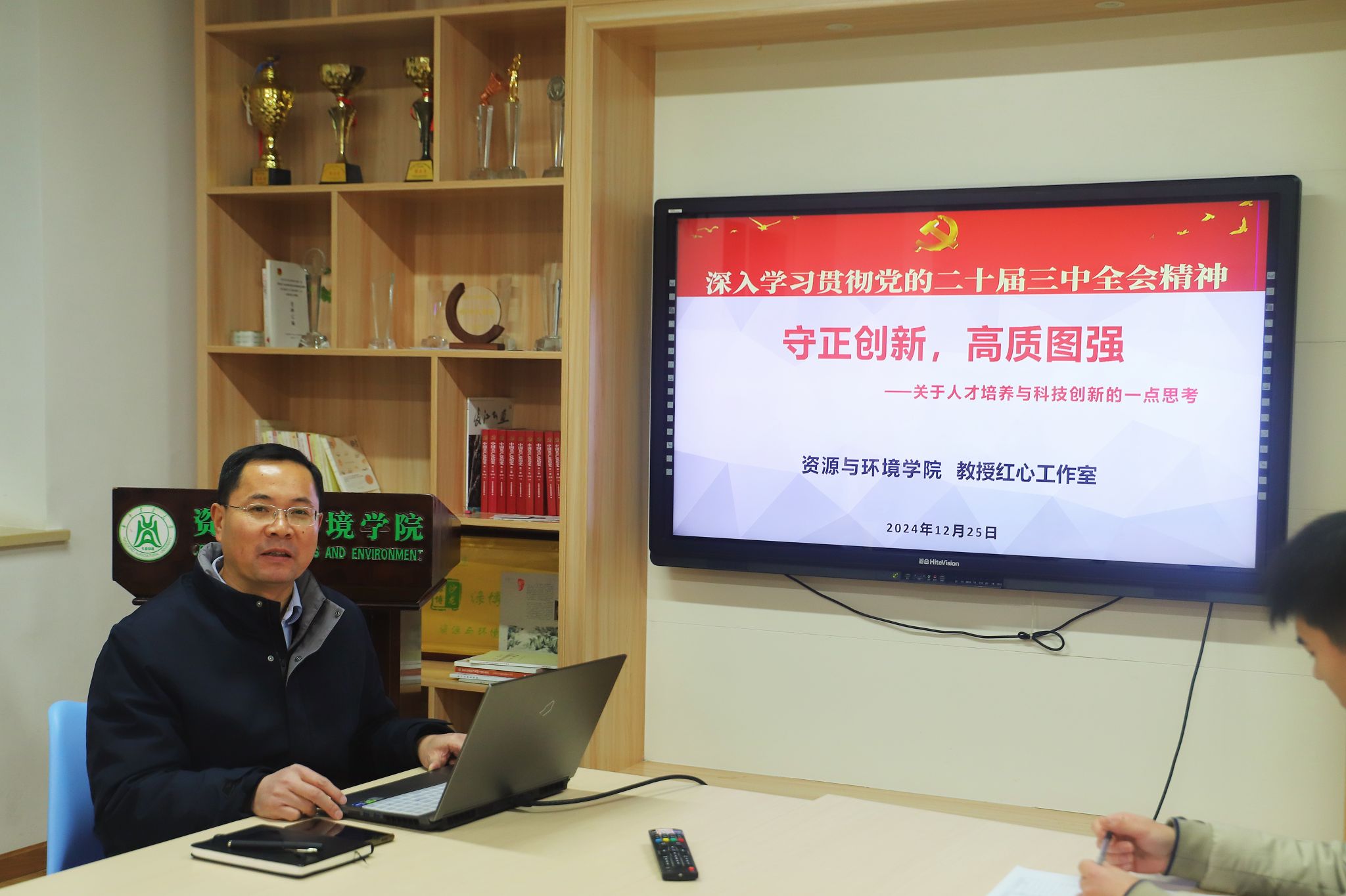 12月25日晚,91直播 邱国红教授在主楼240红心工作室与本科生和研究生以“守正创新,高质图强”为主题开展交流,进一步共同学习党的二十届三中全会精神。