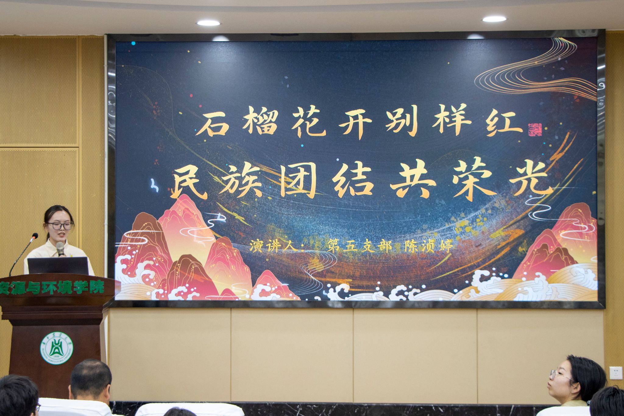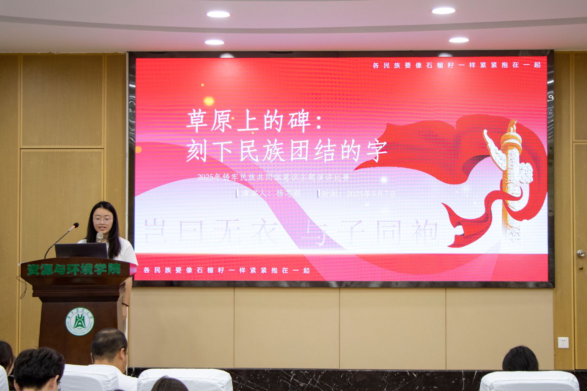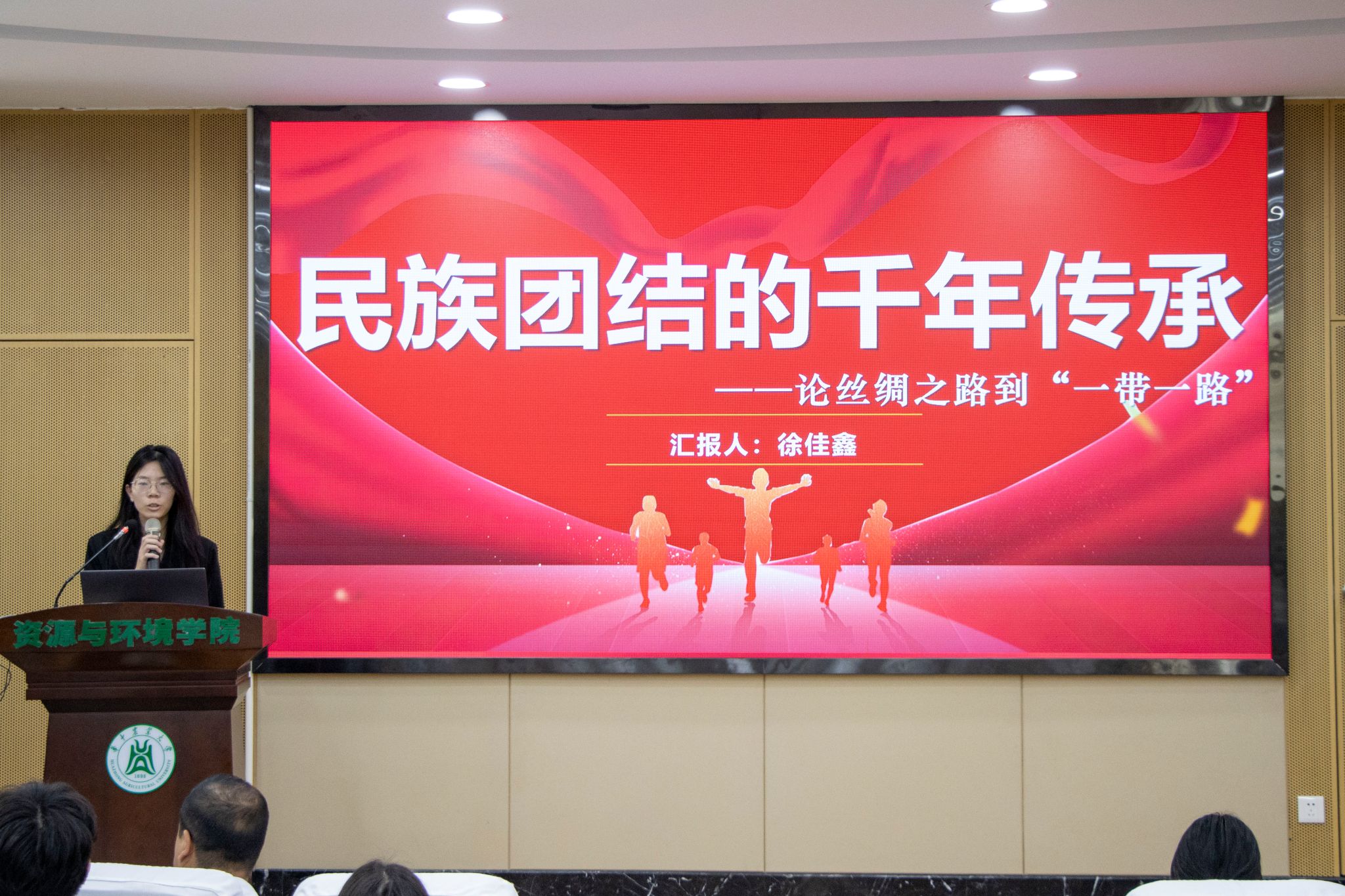 农资2302廖伟以《聚青春星火,燎原绿色疆域》为题,回顾了不同民族为改善生态环境付出的努力。他表示,这些变化展现了科技与团结的力量,让绿水青山变成金山银山。