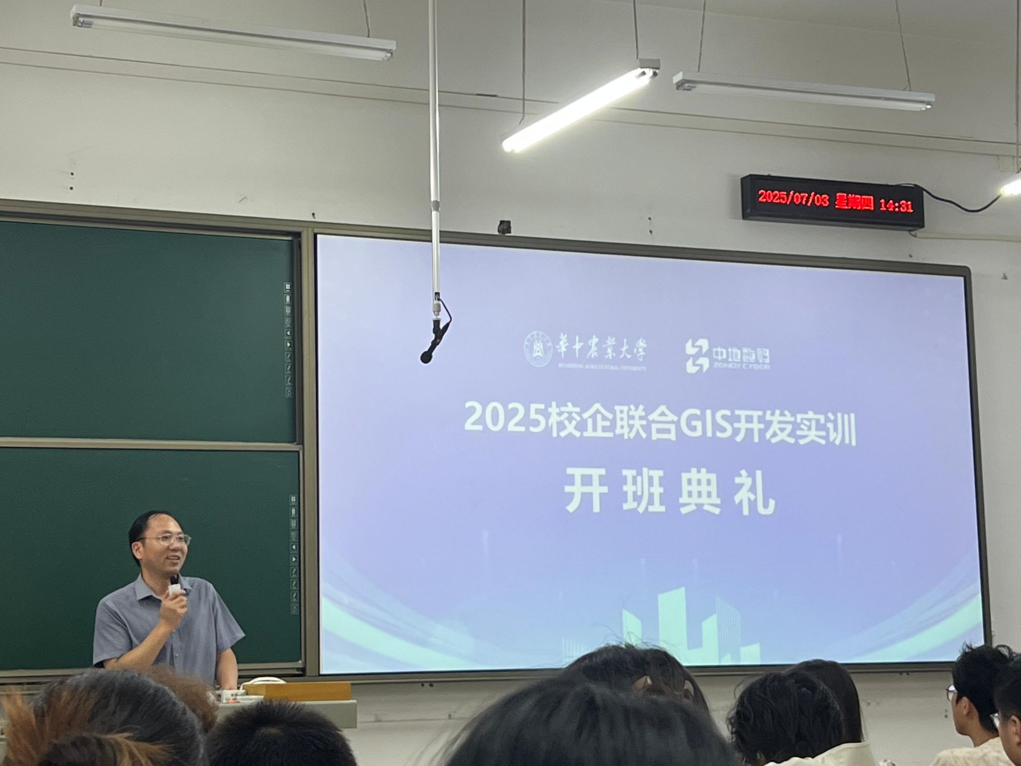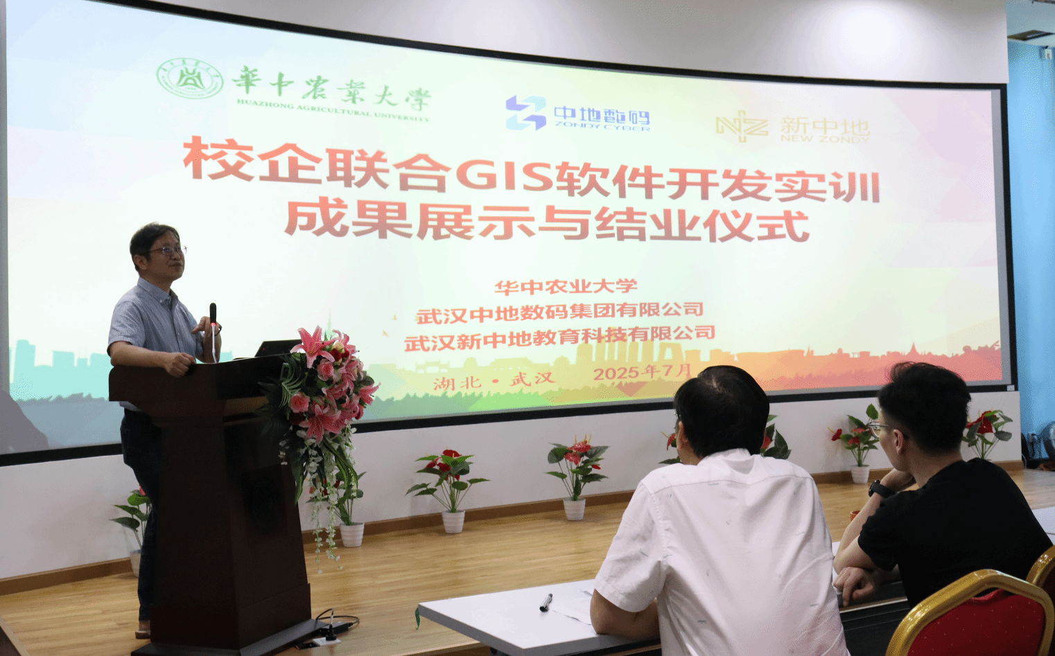 2025年7月25日,由91直播 与武汉中地数码集团有限公司联合举办的智慧城市构建校企联合实训在中地科技园学术报告厅圆满结业。91直播 地理信息科学系主任王天巍、新中地教育高校合作部艾伟老师、新中地教育教研主任方胡朝等领导老师和全体参训学生参加了结业仪式。此次实训不仅是对学生实践能力的一次重要检验,更是91直播 深化校企合作、推动产学研融合的生动实践。