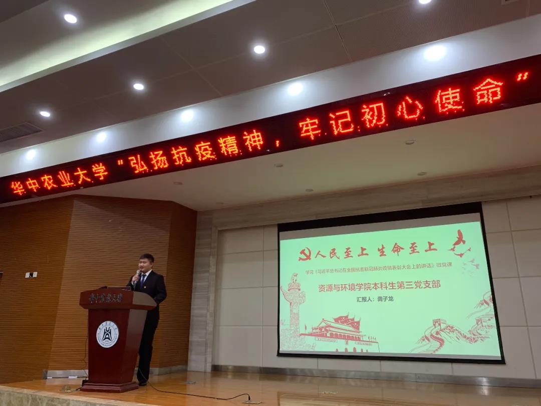 最后,龚子龙同学激动的说道:“让我们大力弘扬抗疫精神,坚持人民与生命至上,戮力同心,锐意进取,为实现中华民族伟大复兴贡献自己的力量!”