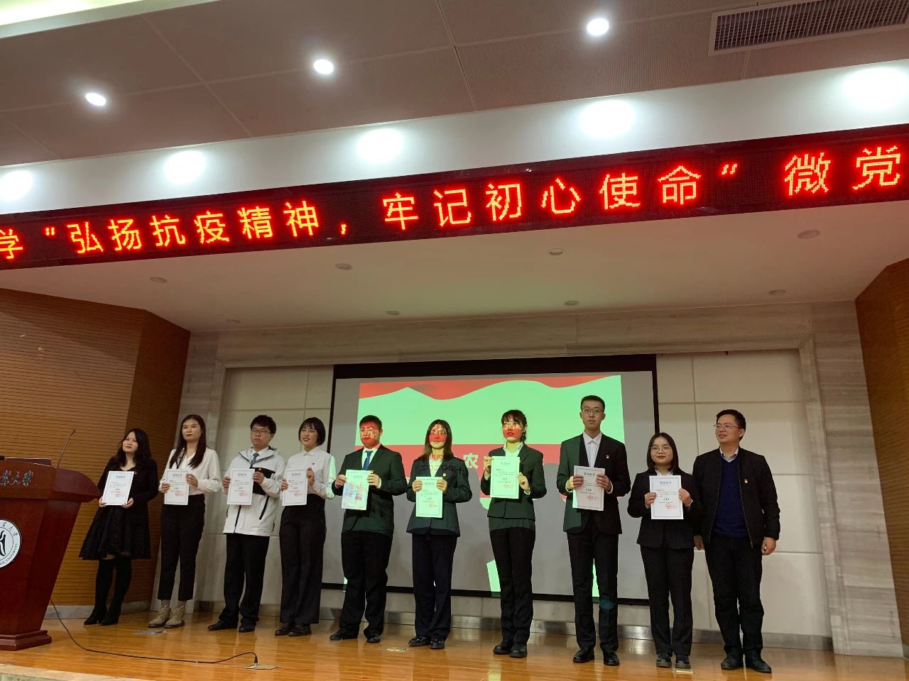 91直播 于12月10日在学生综合服务楼501报告厅召开“弘扬抗疫精神,牢记初心使命”微党课大赛决赛。经过初赛选拔,91直播 本科生第二党支部朱玉杰、本科生第三党支部龚子龙参加本次决赛。