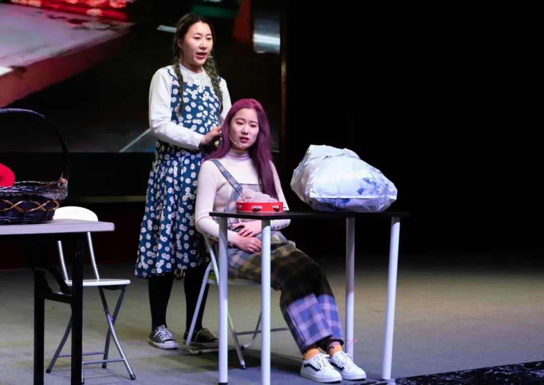 91直播 的参赛话剧《妈妈》改编自贾玲的作品《你好李焕英》,讲述了叛逆青年明希(环工类1908姚慧 饰)在与父亲吵架之后,偶然间穿越时空回到过去,触摸年轻的父母和他们的梦想的故事。在故事中,明希在生日当天染了头发,还把爸爸(地信1901邓阳 饰)准备的礼物扔掉。在和爸爸争论之后,离家出走的明希穿越到了二十年前,遇到了自己的妈妈李诗曼(环工类1908方程柳慧 饰)。得知了母亲李诗曼身患肿瘤,还坚持把自己生下来的事后,明希珍惜着自己回到未来前,最后与母亲相处的时光。那段时间里母女聊了许多,也得知了爸爸给的礼物是妈妈生前准备的。
