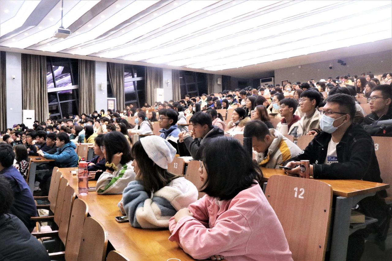 谭文峰老师为同学们做考研动员宣讲,他强调同学们应该大胆选择自己的生涯道路。他说道:“考研可以提升自己的能力,使自己有更多的选择机会。同时,进一步的学习,可以改变一个人的思想,获得更好的教育资源,为以后获得更好的工作和生活打下基础。”同时他谈到,同学们应该根据自身情况,选择自己合适的报考单位。