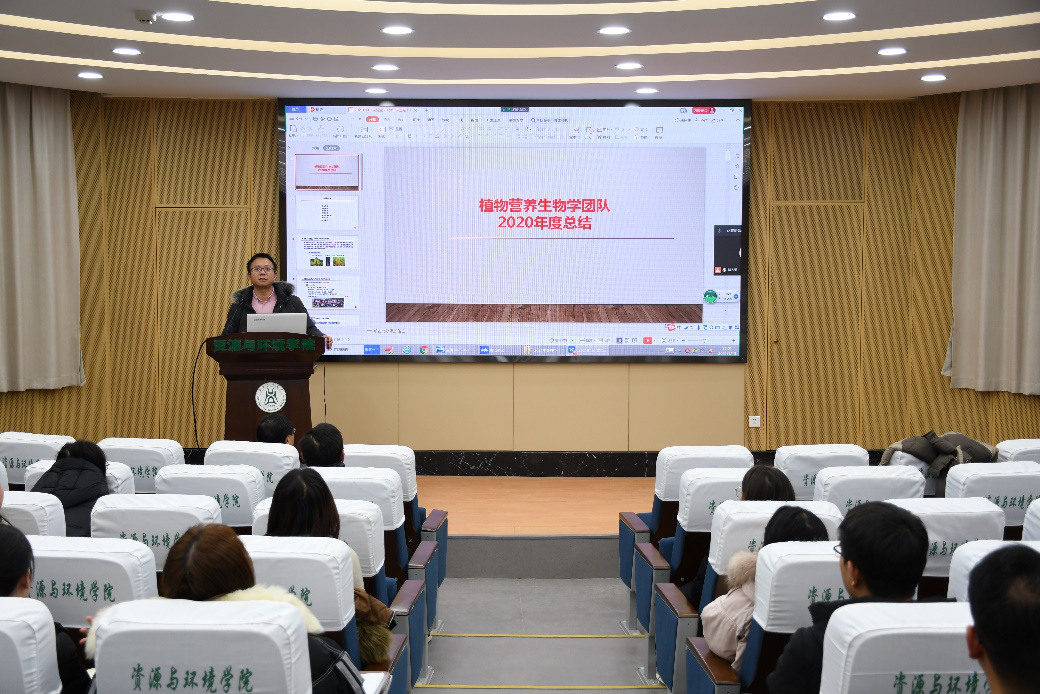 1月10日,91直播 植物营养生物学课题组2020年度学术年会在西附楼报告厅举行,徐芳森教授、石磊教授、王创教授、蔡红梅副教授、丁广大副教授和汪社亮副教授出席了会议,课题组全体同学参会。