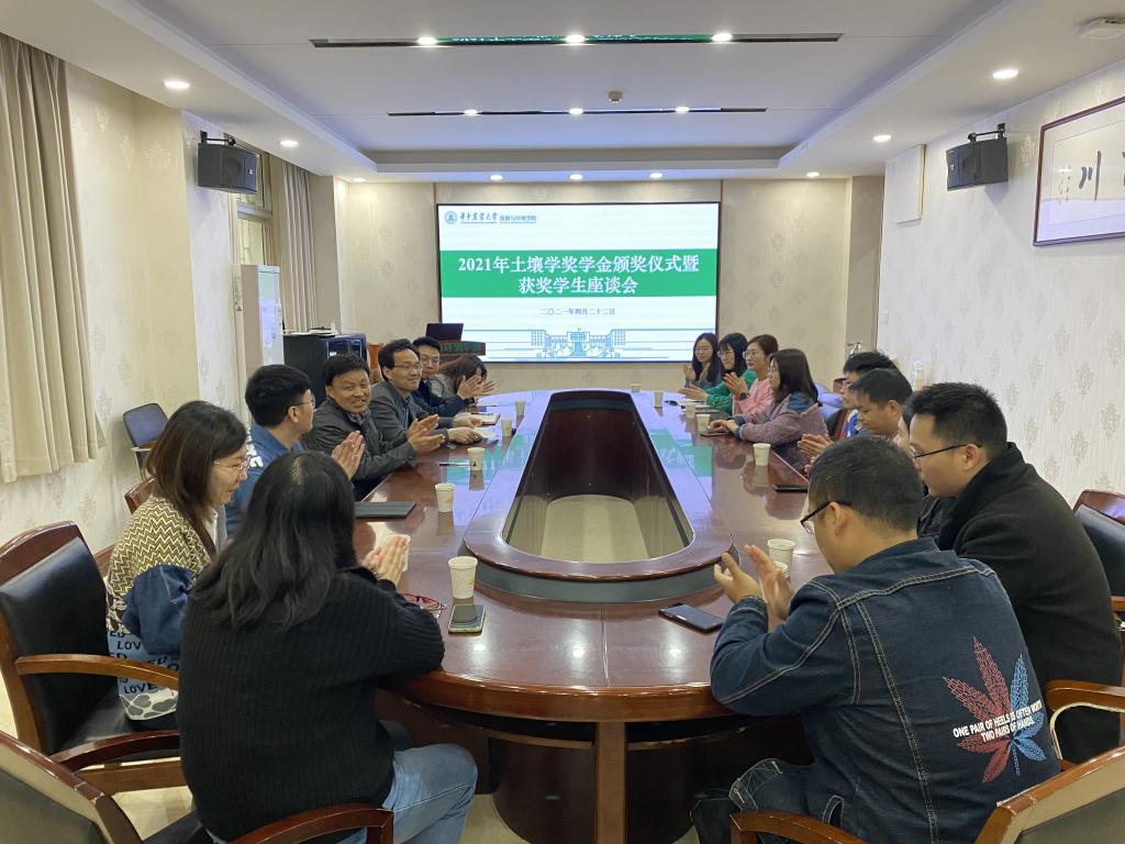 4月22日上午,91直播 2021年土壤学奖学金颁奖仪式暨获奖学生座谈会在91直播 楼204举行,91直播 党委副书记熊海林,土壤学奖学金管理委员会秘书胡红青教授出席颁奖仪式,研究生辅导员胡志宏主持颁奖仪式。