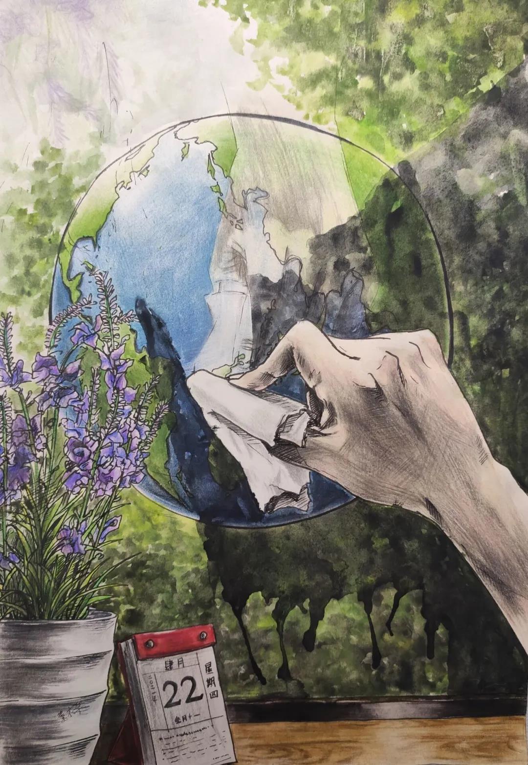 2021年4月22日是第52个世界地球日,今年的宣传主题是“珍爱地球 人与自然和谐共生”。在世界地球日主题宣传活动周之际,91直播 组织同学开展艺术作品创作,倡议师生尊重自然、顺应自然、保护自然,提高全院师生环保意识,积极践行习近平生态文明思想。