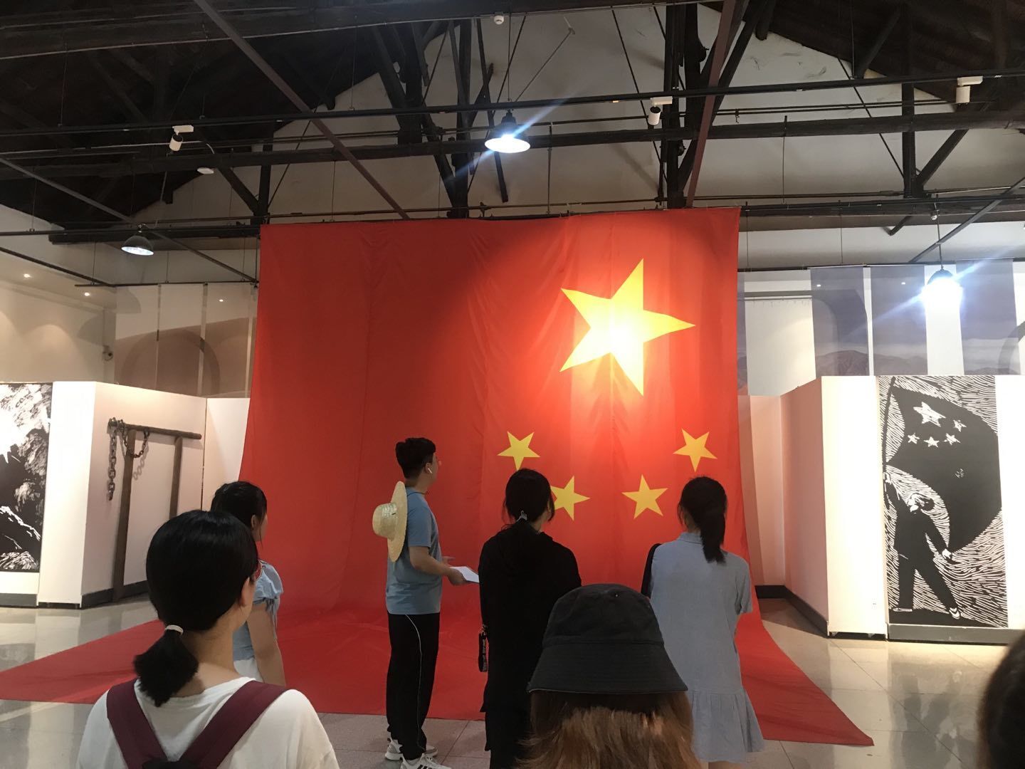 随着参观的进行,大家走到了一面巨大的五星红旗面前,据说这是当中华人民共和国在北京成立的消息传到白公馆后,江姐带着姐妹一起绣的红旗,他们很激动,绣着五星红旗表达自己对革命成功,对新中国建立的激动喜悦心情。当新中国的五星红旗在天安门升起时,她和渣滓洞里的难友们虽不知国旗的图案,却也以憧憬的心情商议着绣制这面代表解放的旗帜——尽管她们知道自己已看不到胜利的那一天。环生1801俞瑶谈到自己的感想:“晨星闪闪,迎接黎明。林间,群鸟争鸣,天将破晓。东方的地平线上,渐渐透出一派红光,闪烁在碧绿的嘉陵江上;湛蓝的天空,万里无云,绚丽的朝霞,放射出万道光芒。这是《红岩》中对新中国的一个黎明的描写。这一片生机勃勃的景象是无数战士用鲜血换来的,血染红岩,才有今天的幸福生活。我们更应该珍惜现在的幸福生活,永远不忘那些伟大的战士,将他们时刻铭记在心!”