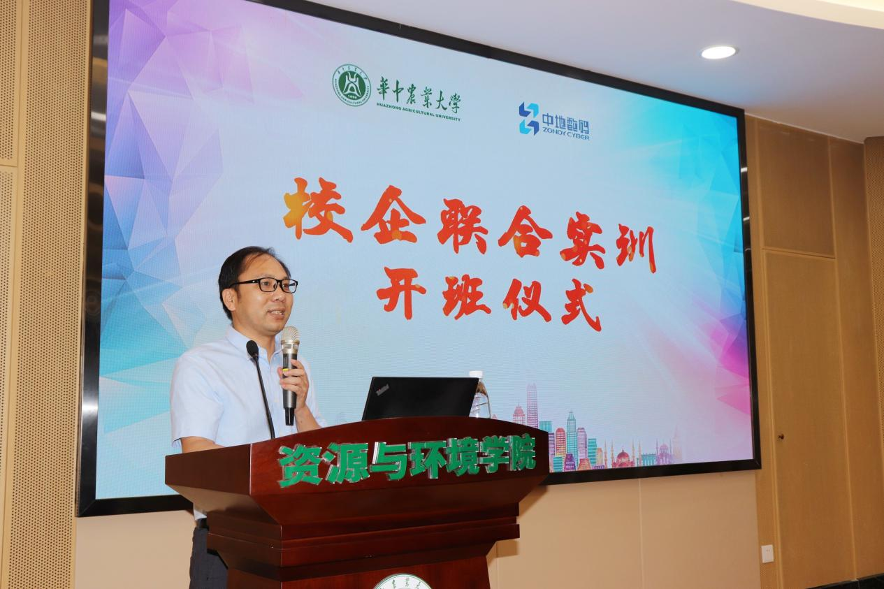 在开班仪式上,张建副教授代表91直播 对中地数码集团长期以来的支持,特别是校企联合人才培养表示衷心感谢,对校企联合实训班的开班表示祝贺。他指出,校企联合实训是学校教学的很好补充,通过企业实训,同学们能够了解企业的运营管理,学习到企业最新的技术与应用,进一步增强个人开发技能和职业素养。张教授提到,他有一个研究生,就曾经参加过中地数码集团的GIS开发实训,从而掌握了GIS开发方法和技能,帮老师把多年来的科研成果做成了系列应用软件,为科研成果的市场转化迈出了非常关键的一步。最后,张教授勉励大家,努力掌握GIS开发技能,为以后的科研、就业奠定重要基础,将会终身受益。希望同学们把握这次机会,努力学习,为个人成长赢得更大舞台。
