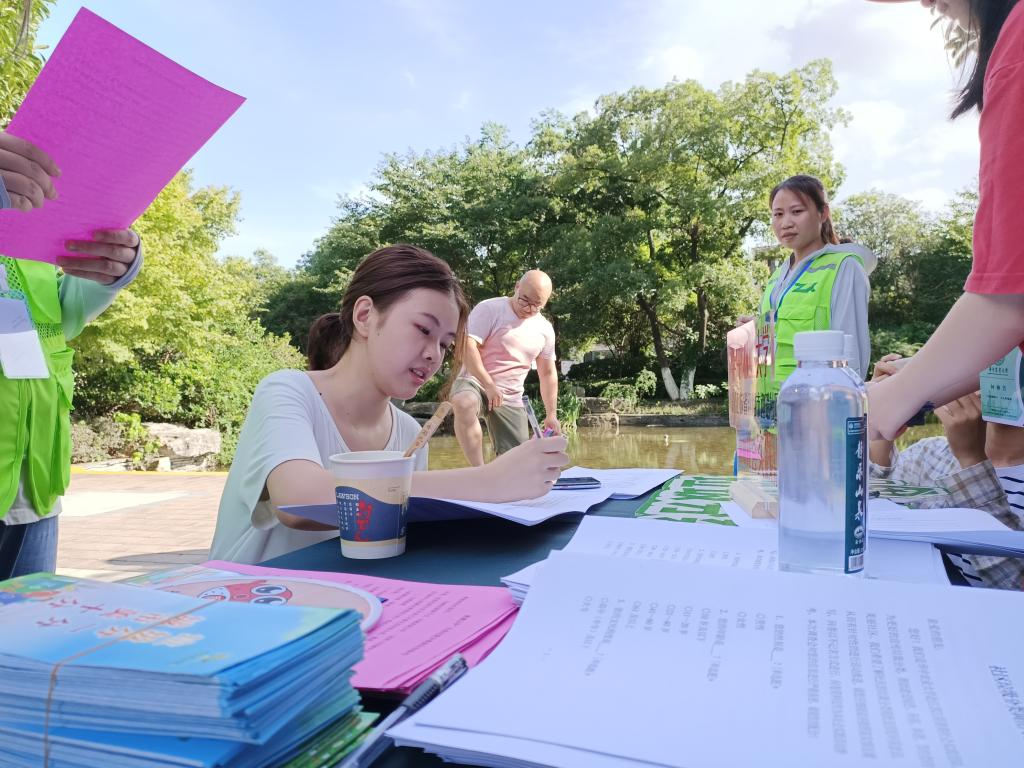 在实践过程中,团队组织专题参观调研,解锁垃圾分类处置新“姿势”。团队集中参观了江阴市垃圾发电厂、餐厨垃圾处理厂、建筑装修垃圾回收综合利用厂三个不同的垃圾处理厂,实地观摩了解了垃圾收集、暂存、转运和处置等基本流程。团队成员还分别与政府有关部门以及光大能源集团企业开展了多次座谈,全面了解城市垃圾处理流程。团队持续强化宣传服务,倡导绿色环保生活新“方式”。在与当地志愿者们共同组织系列宣传活动时,团队成员为孩子们带去了关于环保和垃圾分类知识的趣味亲子活动。团队还在试点小区进行定点宣传,并对小区居民进行了走访,来到居民家中,进行面对面的垃圾分类知识宣传,活动累计发放宣传资料500多份。团队努力加强推广应用,打造社区试点工作新“功能”。团队协助社区工作人员提供面对面入户教学、手把手解难纾困,引导居民尽快适应“三定一督”垃圾分类新模式,助力社区厨余垃圾实现精准分类和破袋投放,逐步形成了可复制、可实施的生活垃圾分类试点工作经验,为本次团队社会实践活动赋予了现实意义。