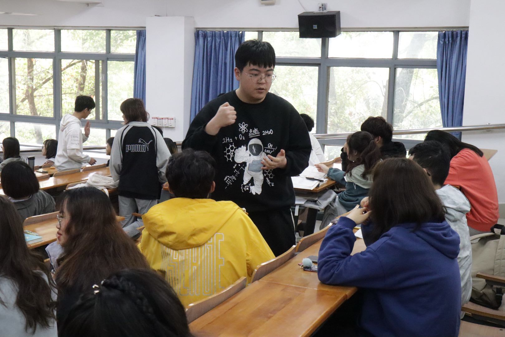刘司玥播放了影片中的演讲片段,并就此抛出了一些问题,引发同学们积极思考,踊跃发言。同时,刘老师还鼓励同学们以影片的内容为主题展开即兴演讲。不少同学都参与其中,他们表示,通过这种实践的方式,能够让自己熟悉演讲步骤和表达技巧。最后,刘司玥也建议同学们在平时的学习生活中能够进行自我练习,以熟练掌握演讲的步骤及技巧。